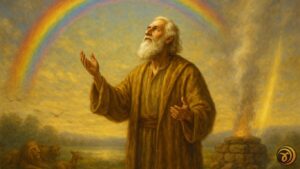 O arco-íris sela o céu e a consciência. Noach recebe o pacto da vida e da justiça. A Torá revela