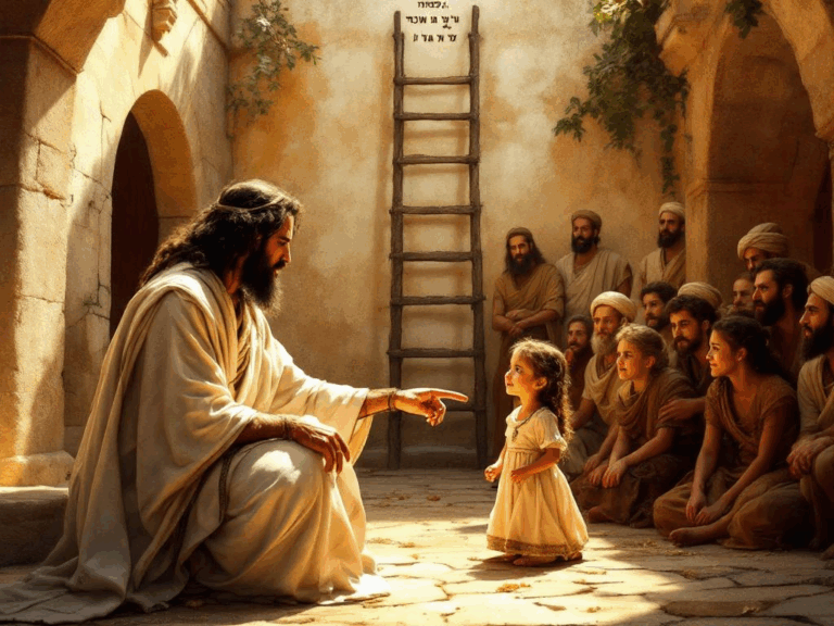 O Talmud (Shabat 89b) associa a humildade infantil à prontidão para aprender a Torá. Yehoshua insere a criança como ícone de pureza e confiança — atributos de quem recebe a revelação do Reino.